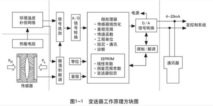 2021-09-08 06:41:25本文關鍵字:壓力變送器 壓力變送器就是能感受壓力并轉換成可用輸出信號的傳感器。當壓力信號作用于傳感器時,壓力傳感器將壓力信號轉換成電信號,經(jīng)差分放大和輸出放大器放大,然后經(jīng)V/A電壓電流轉換成與被測介質(zhì)的液位壓力成線性對應關系的4-20mA標準電流輸出信號。 壓力變送器工作原理方塊圖: